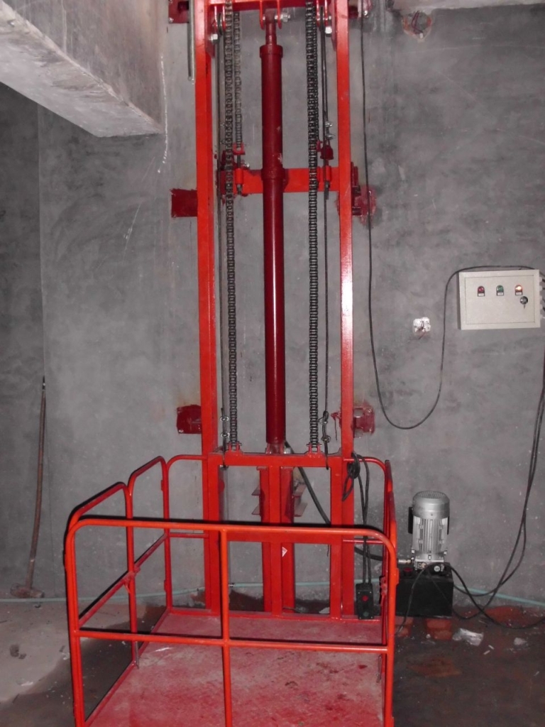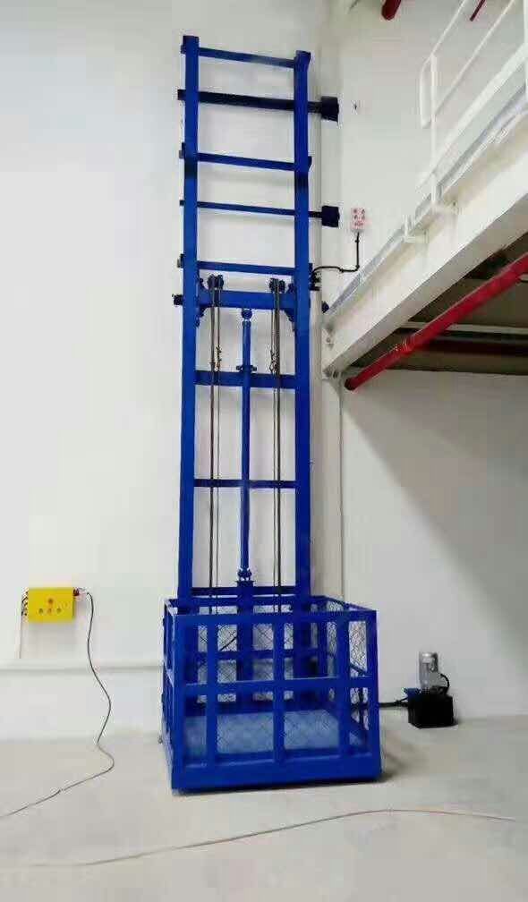 升降機采用液壓油缸作為主要動力,通過重型鏈條和鋼絲繩傳動,保證機器運行的絕對安全。無需地坑和機房,特別適合于有地下室、倉庫改造、新建貨架等,具有安裝維修方便、美觀、安全、操作方便。具體根據(jù)現(xiàn)場的實際環(huán)境生產(chǎn)。