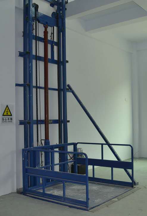 鏈條導軌式液壓升降貨梯是一種非剪叉式液壓升降機械設(shè)備.用于二三層工業(yè)廠房,餐廳,酒樓樓層間的貨物傳輸.最低高度在150-300mm,優(yōu)其適合不能開挖地坑的工作場所.并且無須上部吊點,形式多樣化(單柱,雙柱,四柱).設(shè)備運行平穩(wěn),操作簡單可靠,貨物傳輸經(jīng)濟便捷.